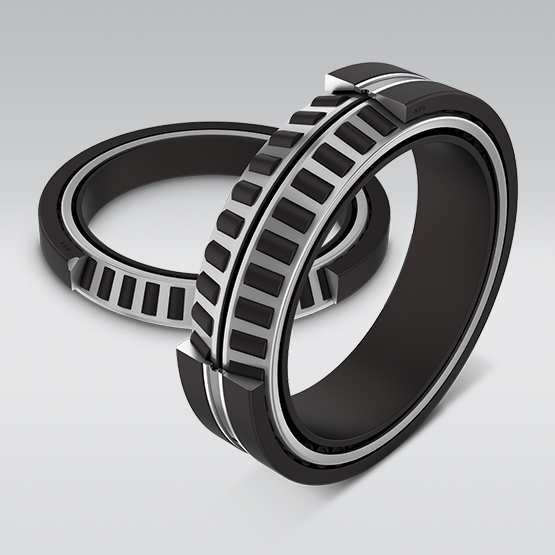 Tapered roller bearings are designed so that the imagined conical apices formed by the raceways of the inner and outer rings and the rollers all converge at one point on the bearing axis. The trapezoidal tapered rollers used as the rolling elements are guided by a large rib on the inner ring.